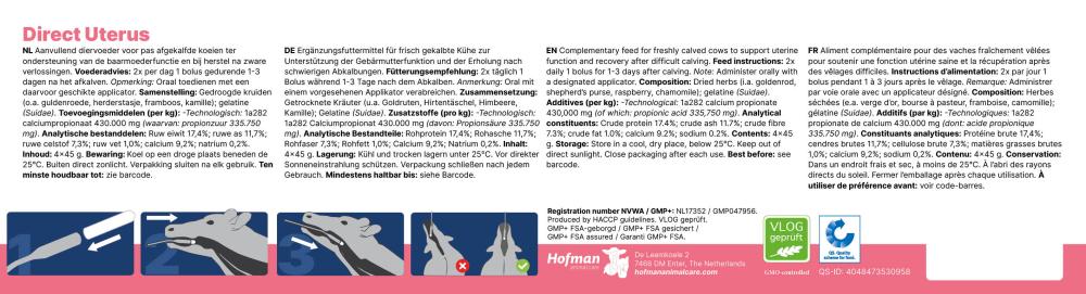 Een bolus voor pas afgekalfde koeien ter ondersteuning van een gezonde baarmoederfunctie en bij herstel na zware verlossingen.