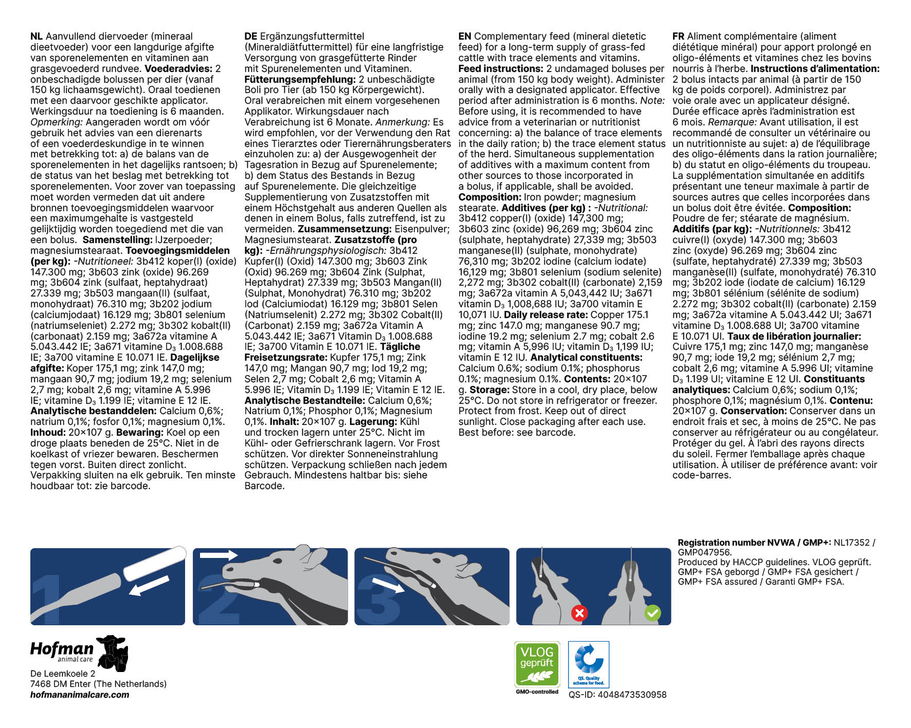 Het geven van een mineralenbolus aan koeien is een effectieve manier om de gezondheid van uw veestapel te ondersteunen. In tegenstelling tot mineralen in poedervorm, wordt een bolus rechtstreeks ingegeven in de maag van de koe via een geschikte bolusschieter, waardoor de mineralen continu worden afgegeven gedurende 6 maanden. Dit helpt om een constante mineralenbalans te behouden en eventuele tekorten te voorkomen.